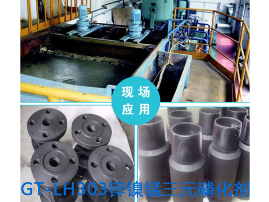 首先向槽中注入3/5的水,然后加入GT-LH303A磷化配槽劑100kg,加足水?dāng)嚢杈鶆?,加入適量的中和劑,攪拌均勻后檢測游離酸度及總酸度等技術(shù)指標(biāo)。開始處理工件前加入適量的促進(jìn)劑且混合均勻。 隨著生產(chǎn)線的運(yùn)行,應(yīng)補(bǔ)充GT-LH303B及促進(jìn)劑,調(diào)整總酸及游離酸到工藝范圍。